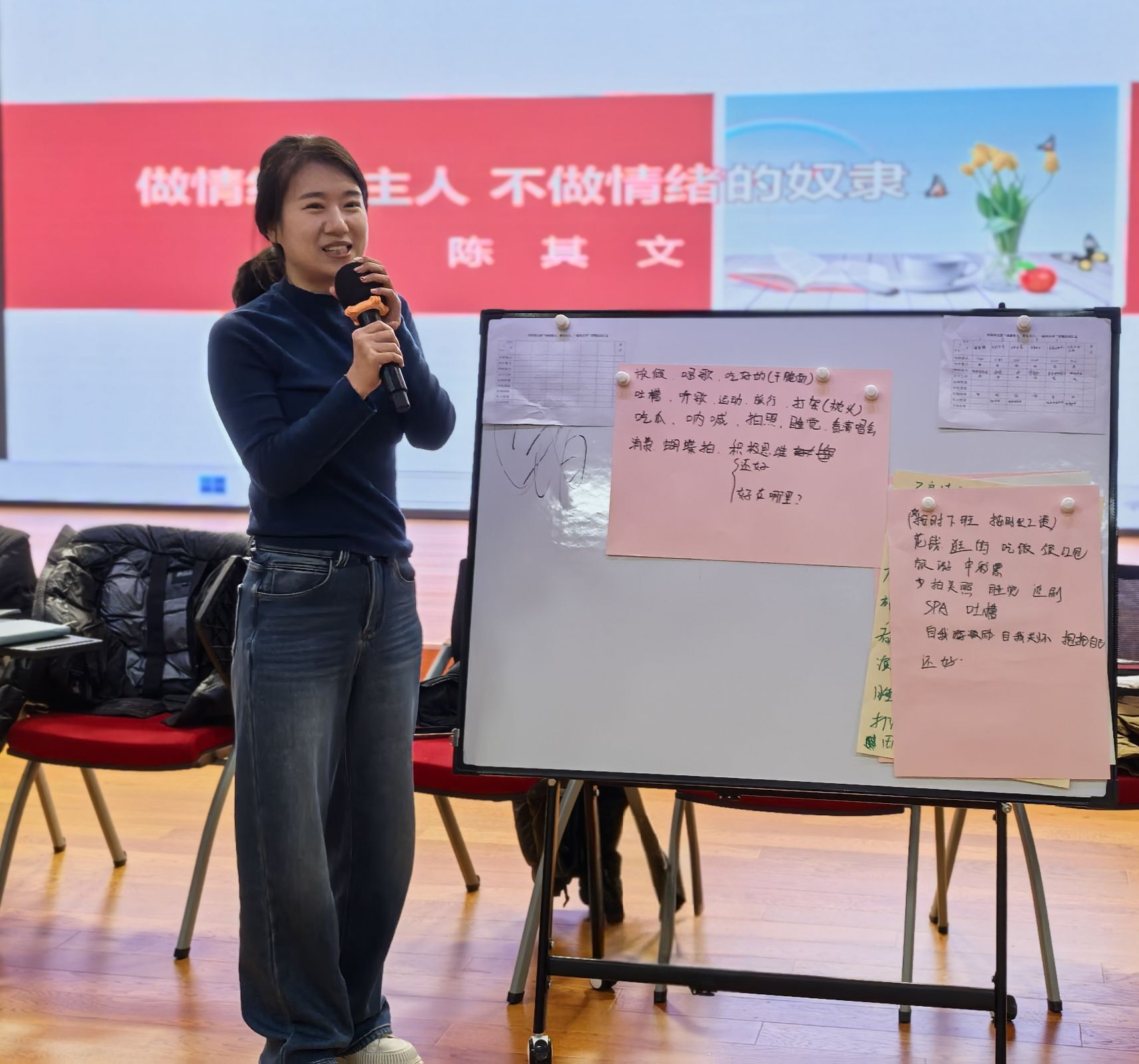 活动聚焦教职工身心健康,向全体女教职工致以节日的问候和美好的祝福,对大家的辛勤付出与无私奉献表示感谢。心理导师陈其文带来了生动的情绪管理与压力疏导讲座,通过互动体验、小组分享等形式,引导老师们科学调节情绪,有效释放日常教育教学工作带来的压力。