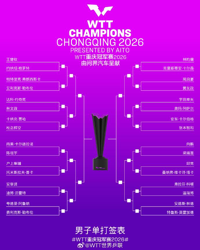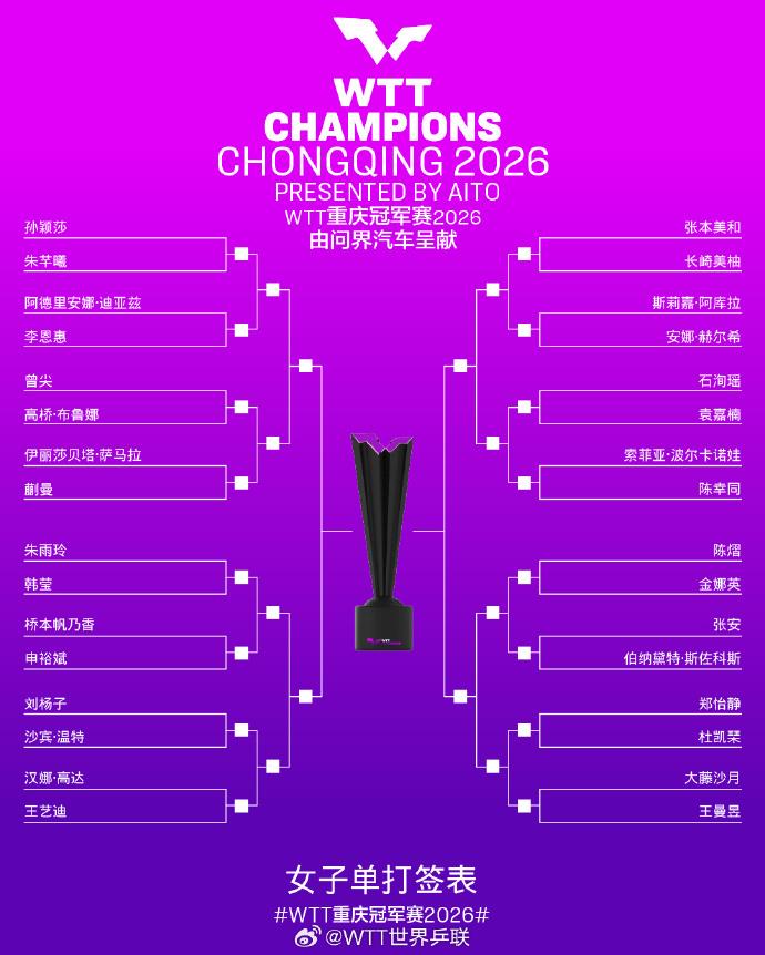 国乒加油!WTT重庆冠军赛男女单打签表出炉