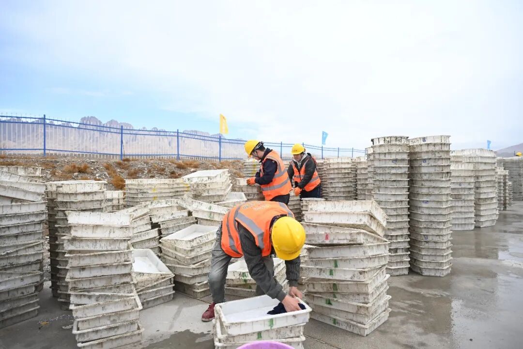 工人们正在清理浇筑的模具。喀什地区融媒体中心 记者陈朝 摄