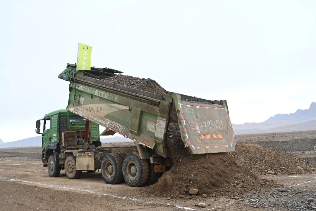 土方车正在倒料。喀什地区融媒体中心 记者陈朝 摄