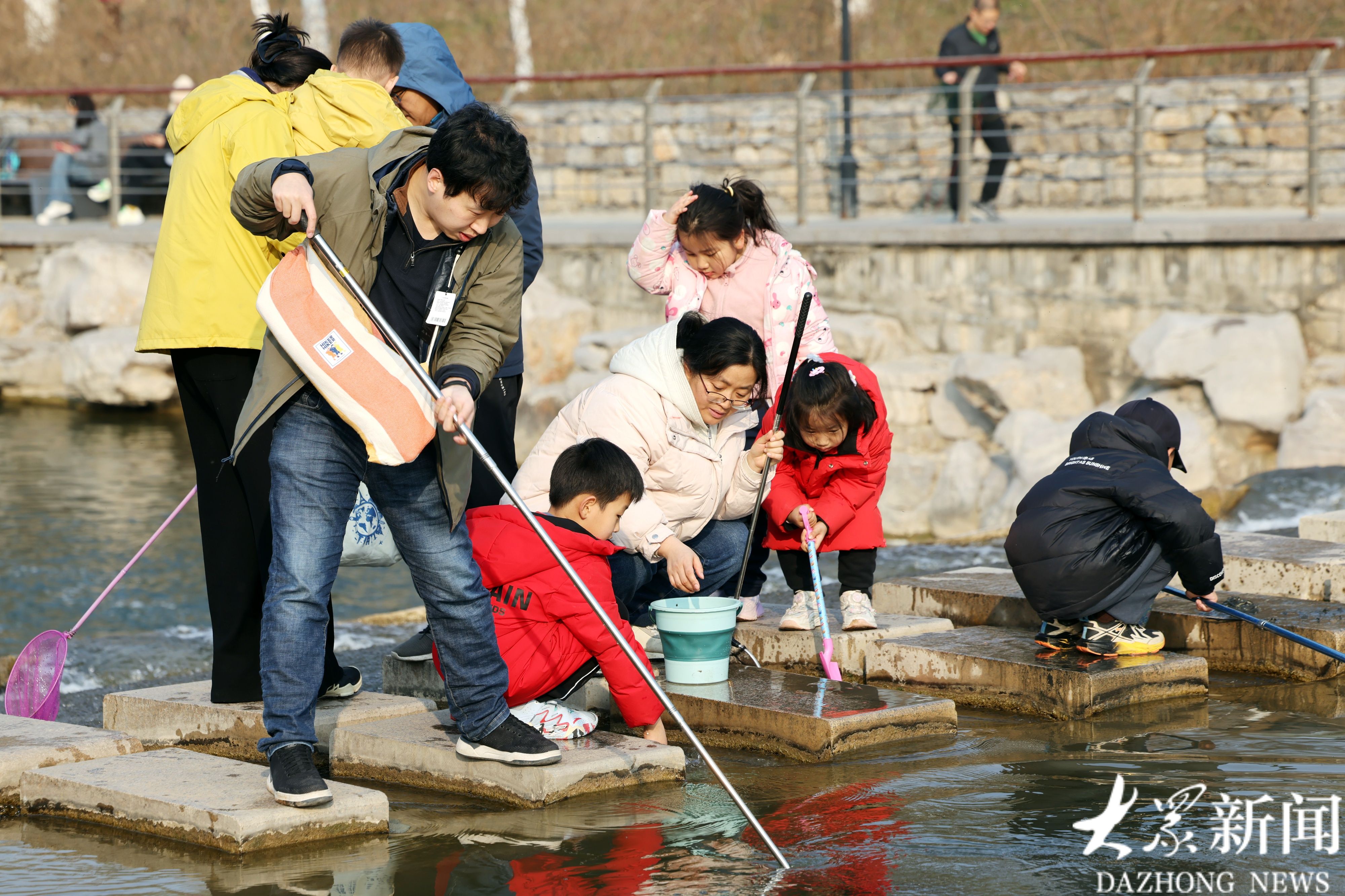 近日,济南市告别连续阴雨,天气转晴,气温回升。3月7日、8日周末,济南市各处公园、生态景区,市民健身游玩,乐享春光。3月7日,临近济南奥体片区的孟家水库风景区,市民身披煦阳光,岸边亲水捕鱼,享受告别了一个冬天的水趣。3月8日,济南天气晴间多云,日间最高温度12℃,济南彩虹湖公园,家长陪着孩子,乐享各种免费游乐健身设施,在春天里奔跑欢乐。(大众新闻记者卢鹏)