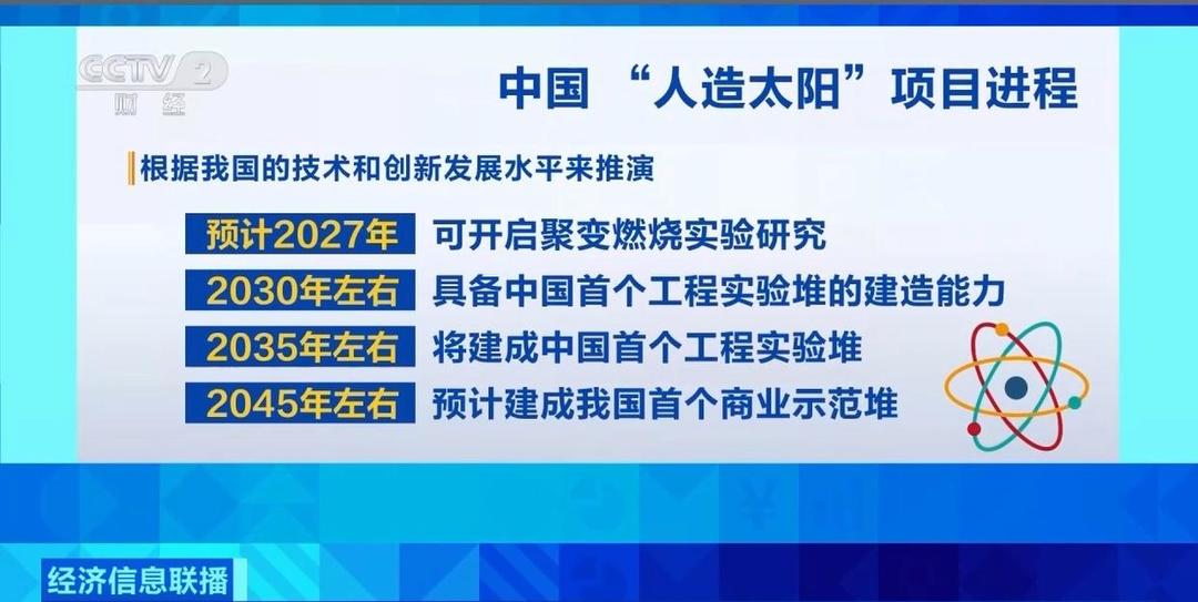 根据我国的技术和创新发展水平来推演,预计2027年可开启聚变燃烧实验研究;2030年左右,具备中国首个工程实验堆的建造能力;2035年左右,将建成中国首个工程实验堆;2045年左右,预计建成我国首个商业示范堆。