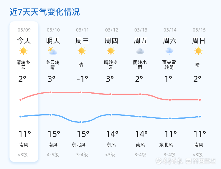 未来三天,德州市天气趋势为晴到多云,气温波动较大,最高气温可达15℃,最低气温将降至-1℃。周三(3月11日)气温降幅较大,市民需注意保暖,尤其是早晚出行时应增添衣物,以防感冒。此外,周五(3月13日)有小雨天气,市民需携带雨具,注意出行安全。