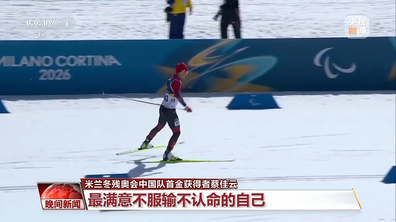 本届冬残奥会开幕后的首个比赛日,中国体育代表团获得2金2银2铜,迎来开门红。在泰塞罗越野滑雪体育场,中国选手蔡佳云在残奥冬季两项男子7.5公里站姿组比赛中夺得冠军,这也是中国体育代表团在本届赛会的首枚金牌。赛后,总台记者对他进行了采访,他说,最满意不服输不认命的自己在赛场上拼搏。