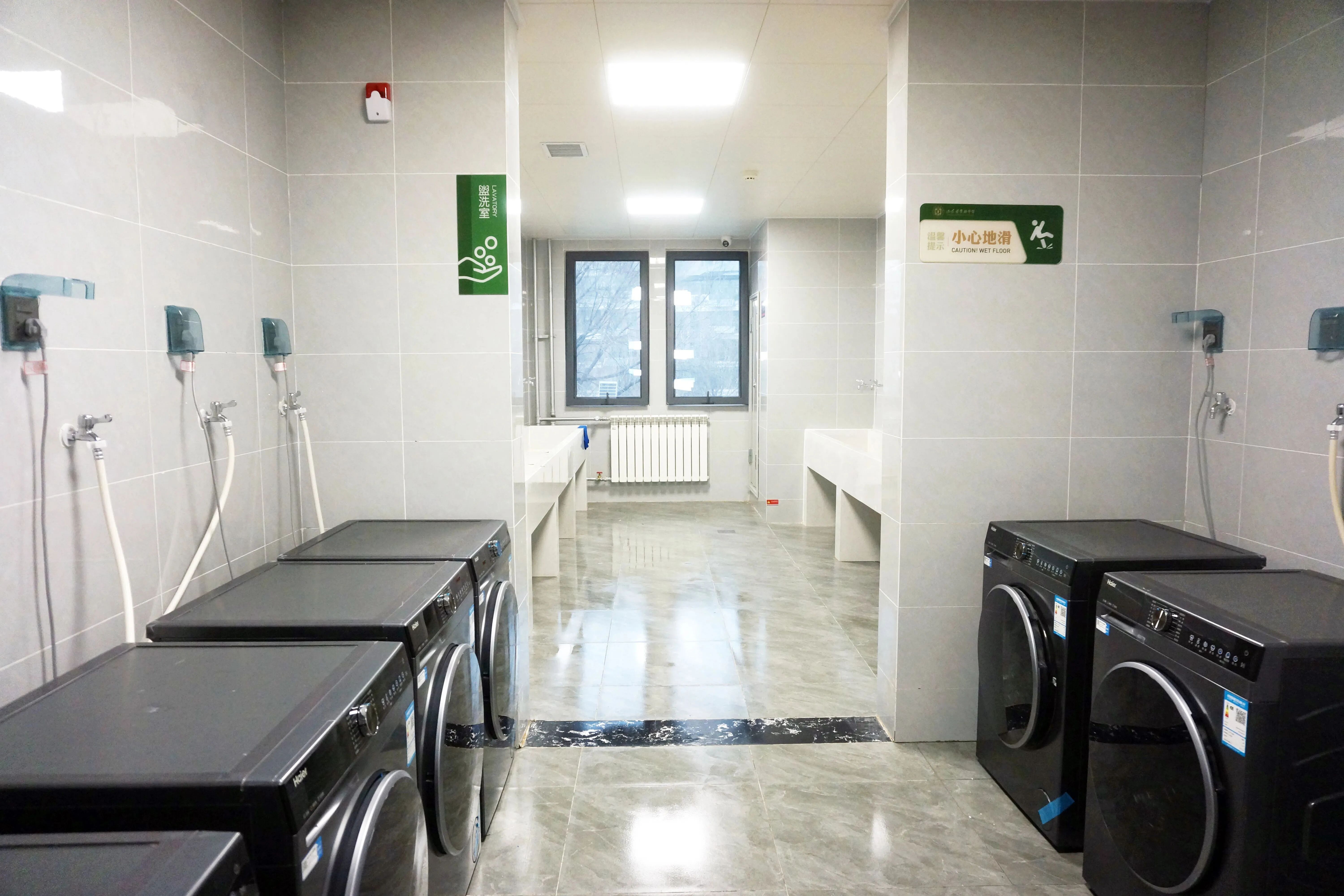 新建宿舍楼建筑面积约1.1万平方米,共设157间宿舍,可容纳约1200名学生入住。宿舍采用8人间标准设计,采光通透,标配空调、风扇、独立卫生间及淋浴设施;楼层同步配建开水间、洗衣房、公共盥洗室等生活功能区,硬件配套完善,为学生营造了舒心惬意的居住环境。
