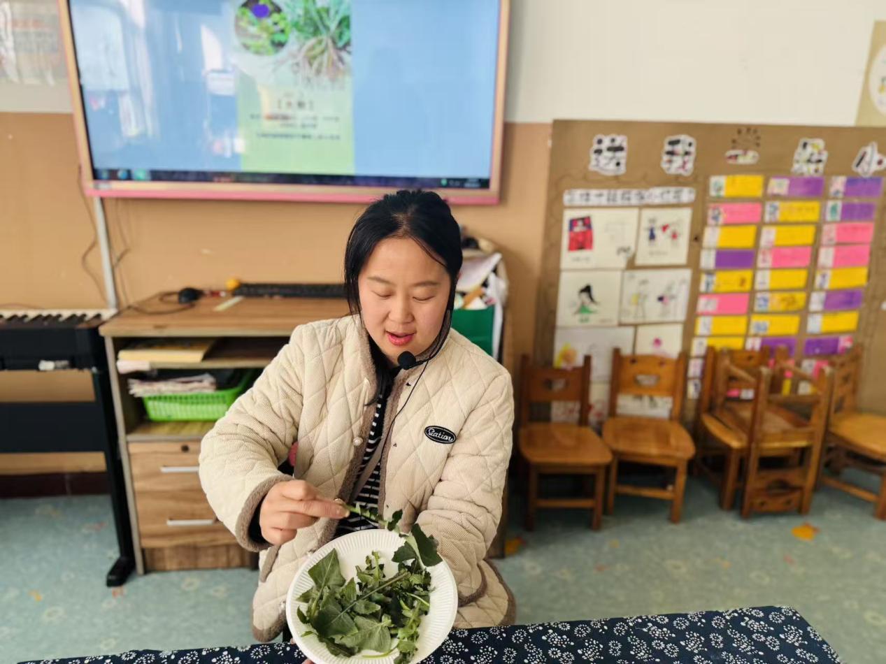 活动现场暖意融融,趣味盎然。老师们结合微山本地地域特色,带领孩子们认识了薄荷、艾草等常见中草药,通过“看一看、摸一摸、闻一闻”的沉浸式体验,引导孩子们仔细观察草药的形态、纹理,感知草药的独特气味,直观了解中草药的基本特性,在好奇心与探索欲中解锁中医药的小知识。