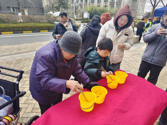 活动现场暖意涌动,热闹有序。趣味环节中,“快乐夹球”游戏点燃全场热情,居民们踊跃参与、默契协作,在轻快的节奏中切磋技巧、互动交流,尽显昂扬向上的精神风采。同步开展的健康服务专区,瑞海卫生服务站医护人员细致提供健康监测服务,耐心解答日常保健、疾病预防等疑问,将专业的健康指导送到居民身边。