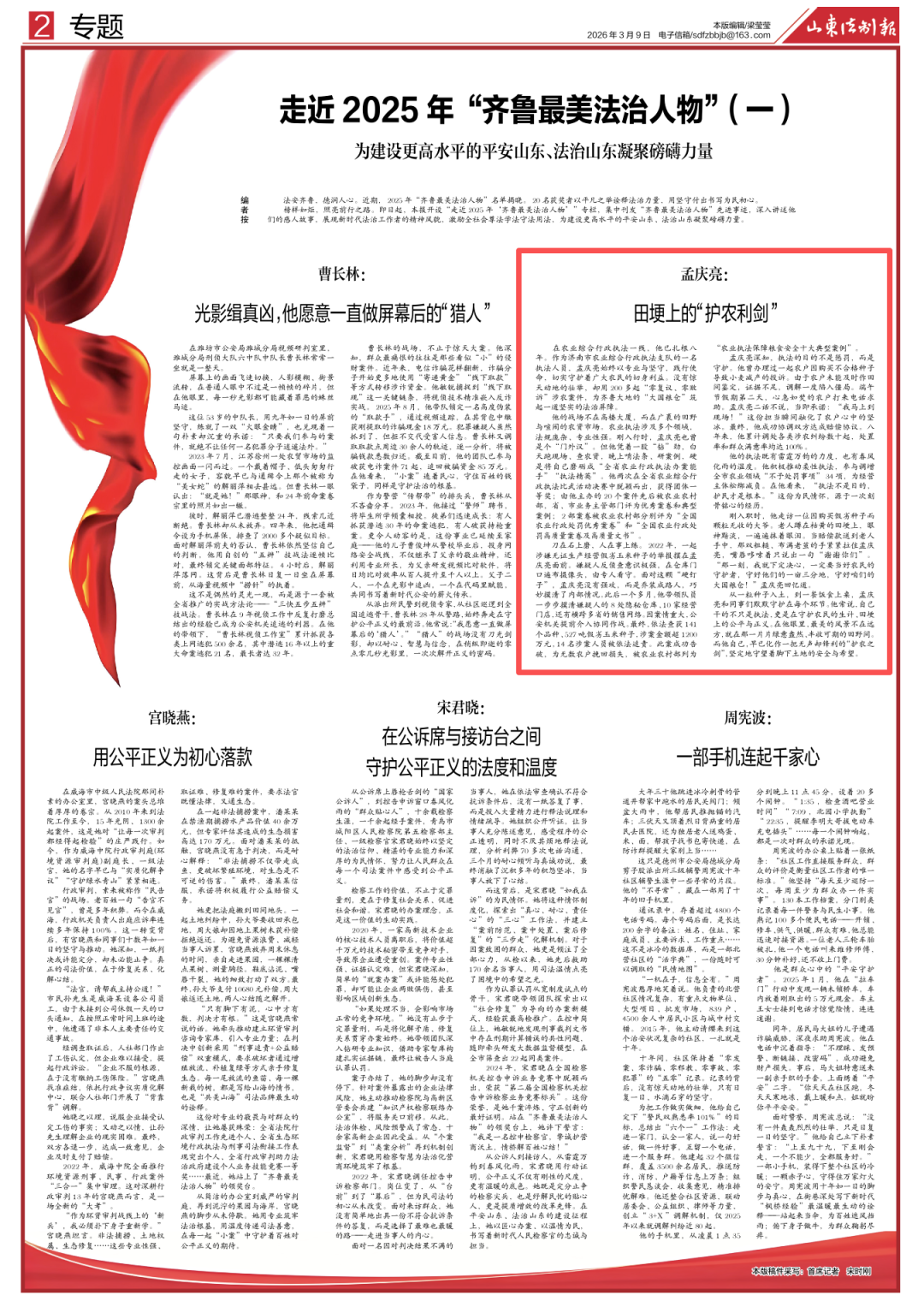 榜样如炬,照亮前行之路。山东法制报开设“走近2025年‘齐鲁最美法治人物’”专栏,集中刊发“齐鲁最美法治人物”先进事迹,深入讲述他们的感人故事,展现新时代法治工作者的精神风貌,激励全社会尊法学法守法用法,为建设更高水平的平安山东、法治山东凝聚磅礴力量。