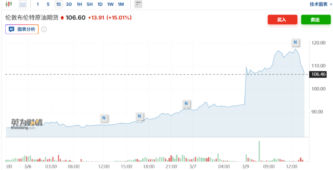 G7将讨论释放石油储备,油价快速回落快讯 | 2026-03-09 14:16:37 微信扫码扫码下载客户端布伦特原油期货失守108美元/桶,日内涨幅收窄至16%。WTI原油期货失守104美元/桶,日内涨幅收窄至14%。报道称G-7将讨论联合释放紧急石油储备。责任编辑:金雪
