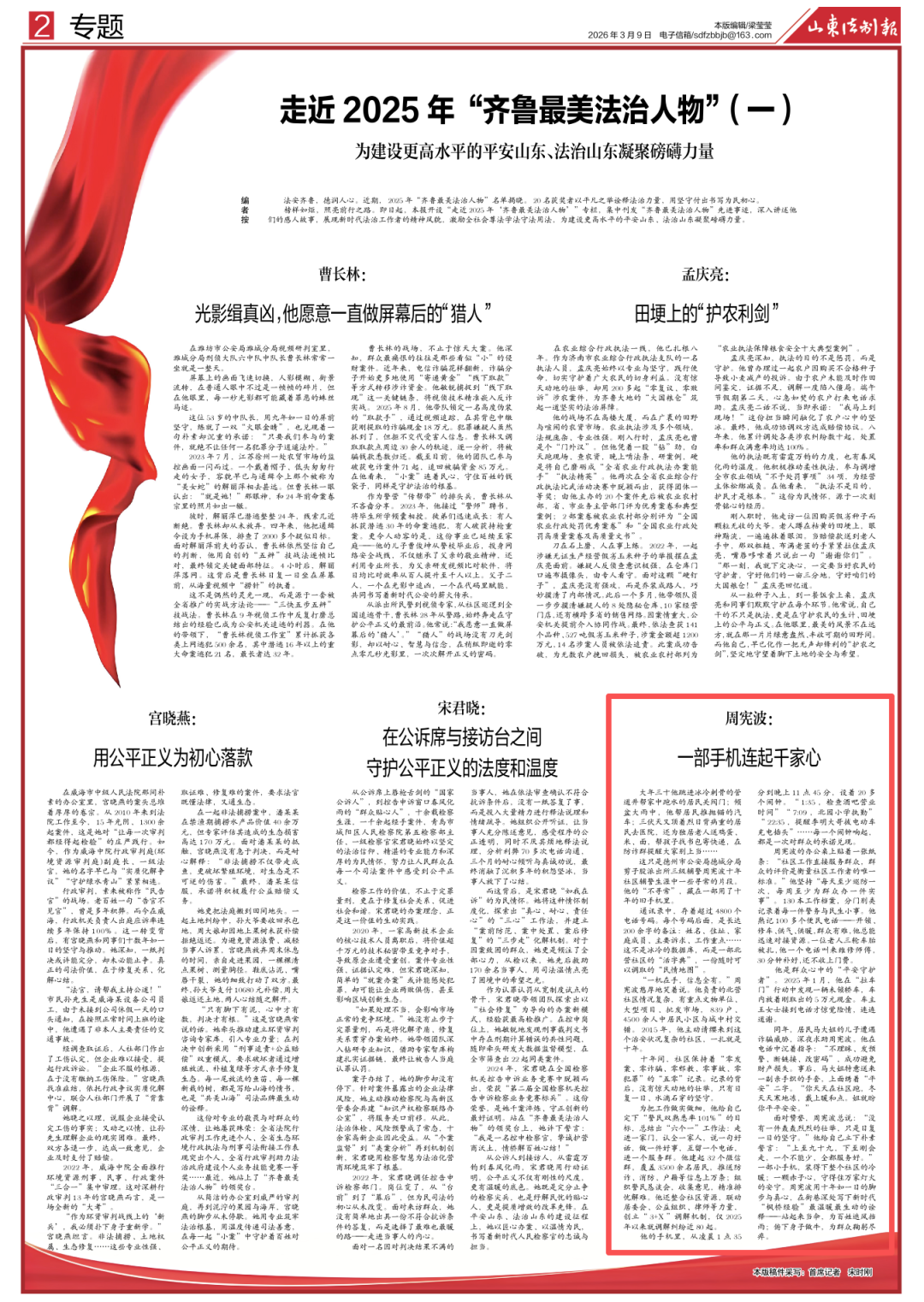 榜样如炬,照亮前行之路。山东法制报开设“走近2025年‘齐鲁最美法治人物’”专栏,集中刊发“齐鲁最美法治人物”先进事迹,深入讲述他们的感人故事,展现新时代法治工作者的精神风貌,激励全社会尊法学法守法用法,为建设更高水平的平安山东、法治山东凝聚磅礴力量。