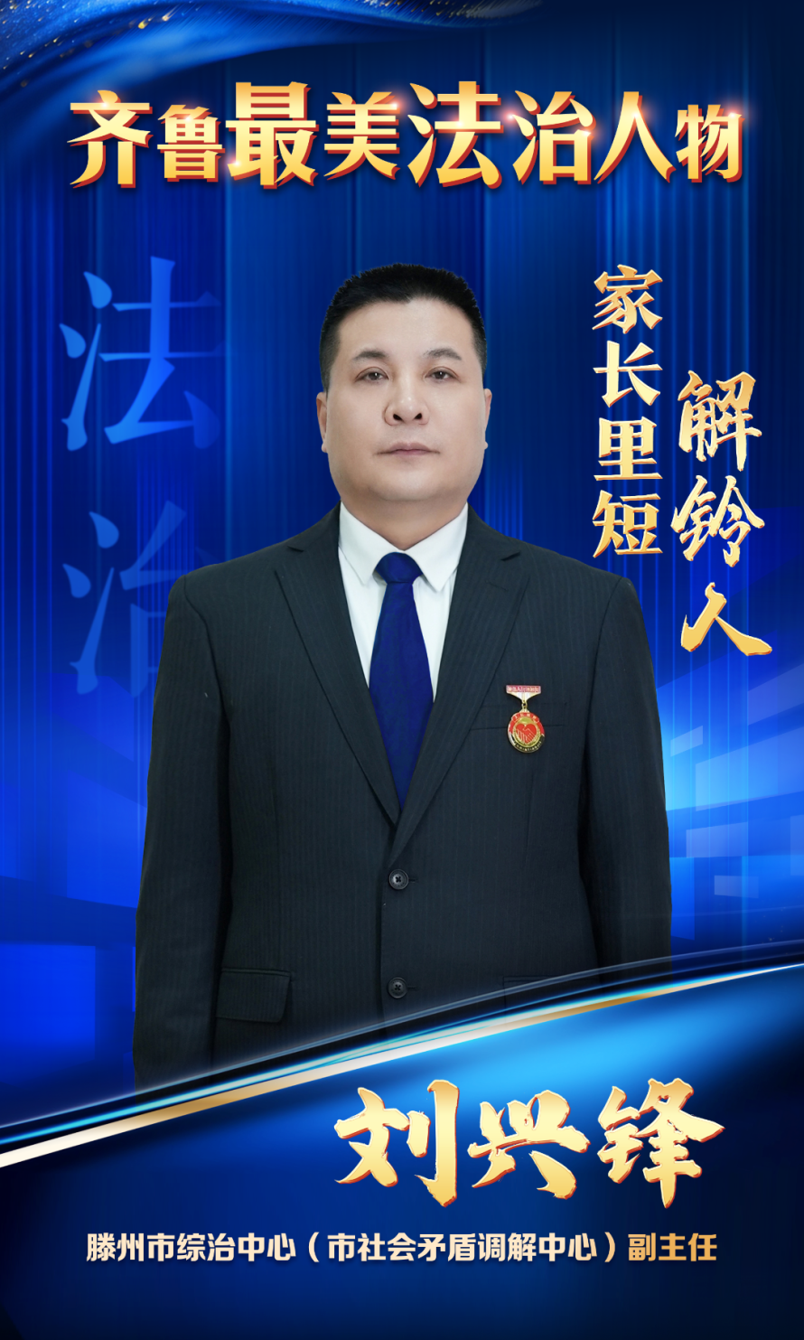在聚光灯下,滕州市综治中心副主任刘兴锋接过“齐鲁最美法治人物”奖杯。对他而言,这尊奖杯既是对过去二十九载寒暑的见证,更是对一种信念的肯定——调解不仅要“解事”,更要“解心”。