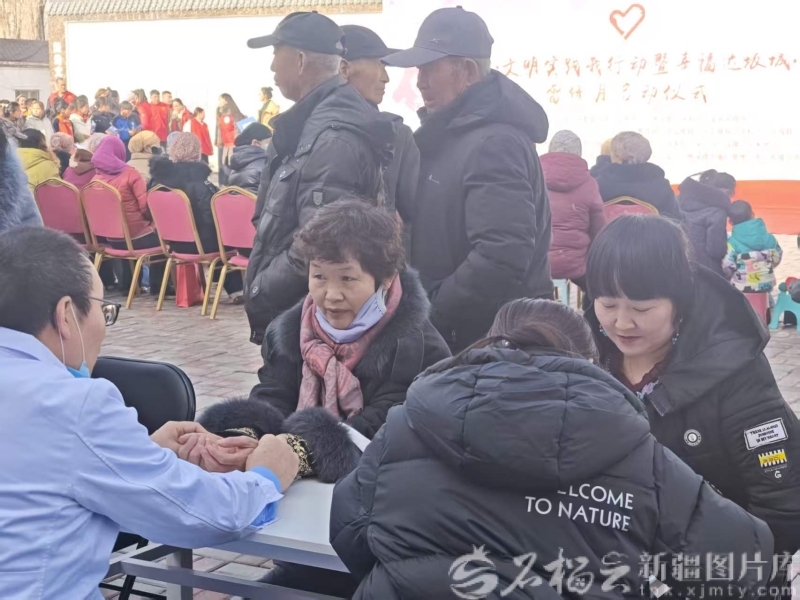 村民在东沟乡苇子村村委会大院接受义诊服务。石榴云/新疆日报记者 宋海波 摄