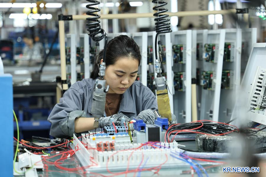 지난달 27일 둥관 신이(信易)전열기계회사 생산 작업장 작업하고 있는 직원. (사진/신화통신)