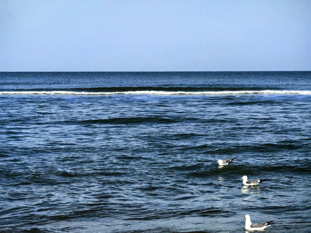 海天一色,鸥鸣相伴