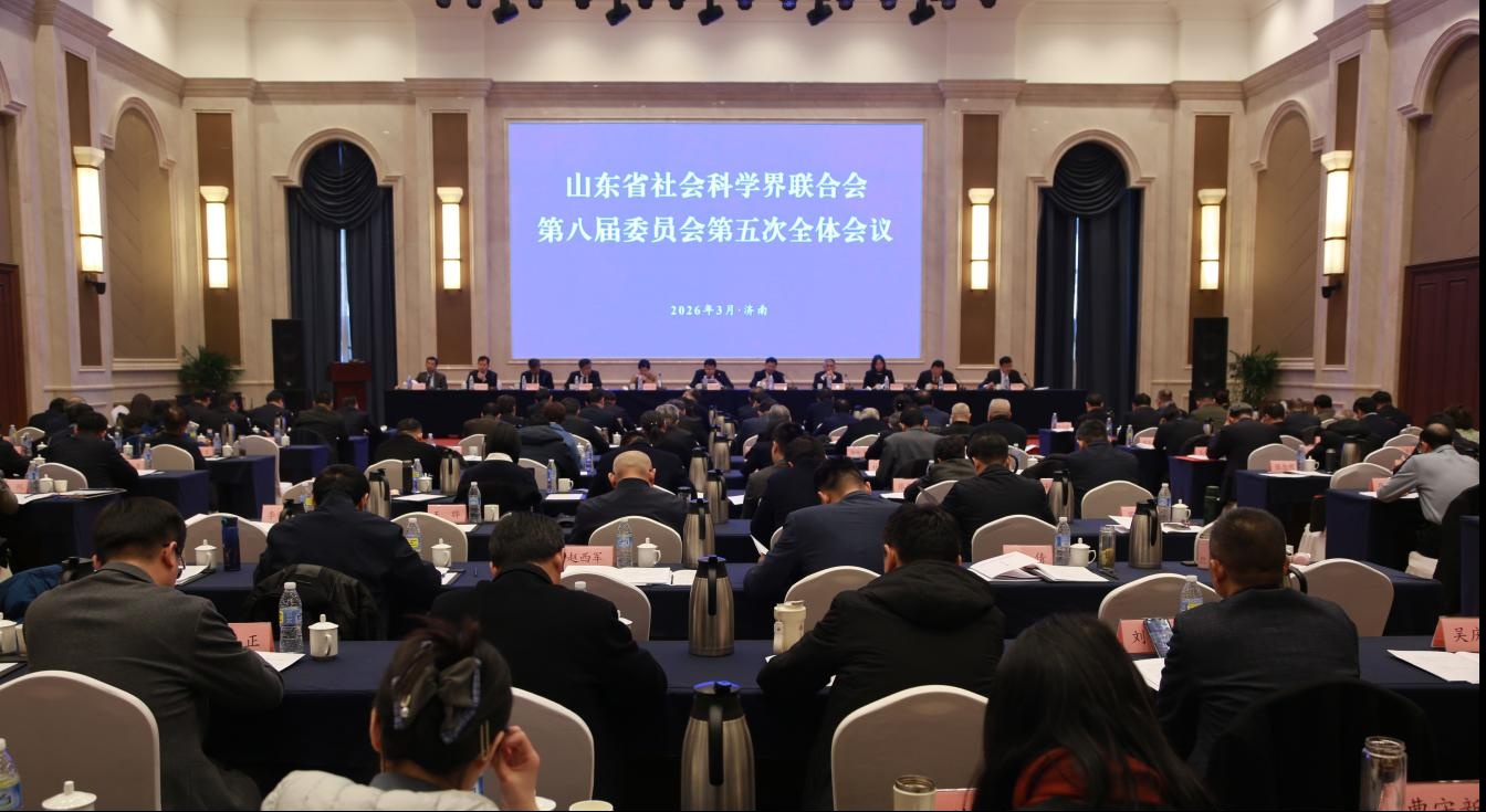 3月9日,山东省社会科学界联合会第八届委员会第五次全体会议在济南召开。会议以习近平新时代中国特色社会主义思想为指导,深入贯彻党的二十大和二十届历次全会精神,全面贯彻习近平总书记关于哲学社会科学的重要论述和对山东工作的重要指示批示精神,总结省社科联八届四次全委会以来的工作,部署“十五五”时期及2026年全省社科联系统重点工作任务,凝聚全省社科界智慧力量,奋力开创山东哲学社会科学事业繁荣发展新局面。