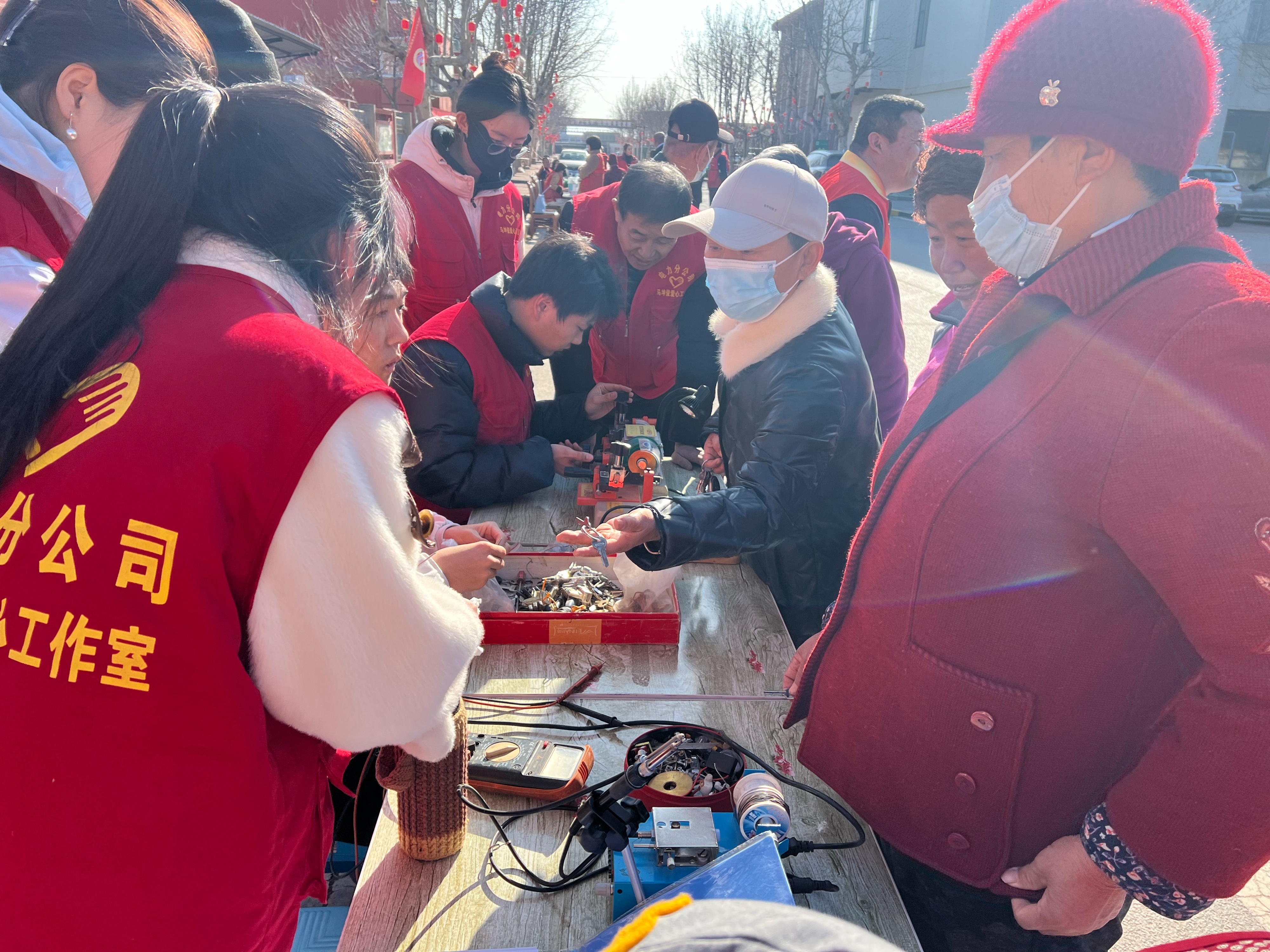活动现场秩序井然、氛围热烈,各项服务有序开展。配钥匙专区的工作人员高效作业,快速为居民解决钥匙丢失、断裂损坏的日常难题,提供便捷高效的应急服务;家电与门窗维修专区的师傅耐心提供故障排查、维修咨询及简易维修服务,帮居民轻松化解居家小故障、小烦恼;中医健康专区人气满满,中医师通过推拿、理疗等方式,帮助长期劳累的居民舒缓身心、调理亚健康状态,引导大家树立日常健康养护意识......社区工作人员化身政策宣传员,现场细致解读社保、医保、民生福利等各类惠民政策,一对一耐心解答居民疑问,打通政策落地的“最后一公里”。