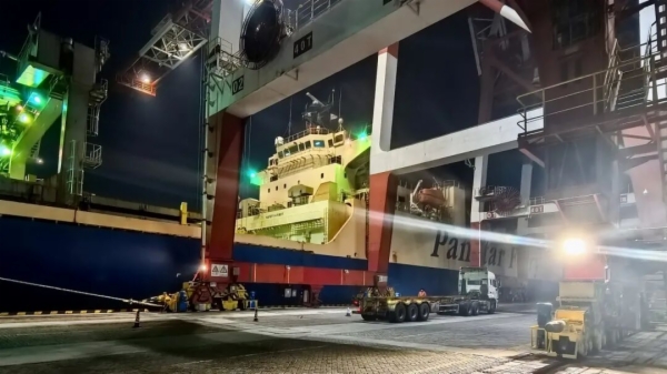 作业过程中,威海港抽调“党员先锋岗”骨干组建攻坚突击队,以“秒级响应”的处置效率、“双吊联动”的作业模式,配合14辆内拖车辅助现场作业,实现作业效率“马力全开”。现场管理员依托ICTMS与PCS生产系统,动态调整作业动线,最大化发挥“就近装卸”“重去重回”的作业效能,保障“船到即卸、卸完即运”的快速衔接,以“稳、准、快”最终实现所有船舶按期完工,以硬核实力践行“效率快港”的作业承诺。