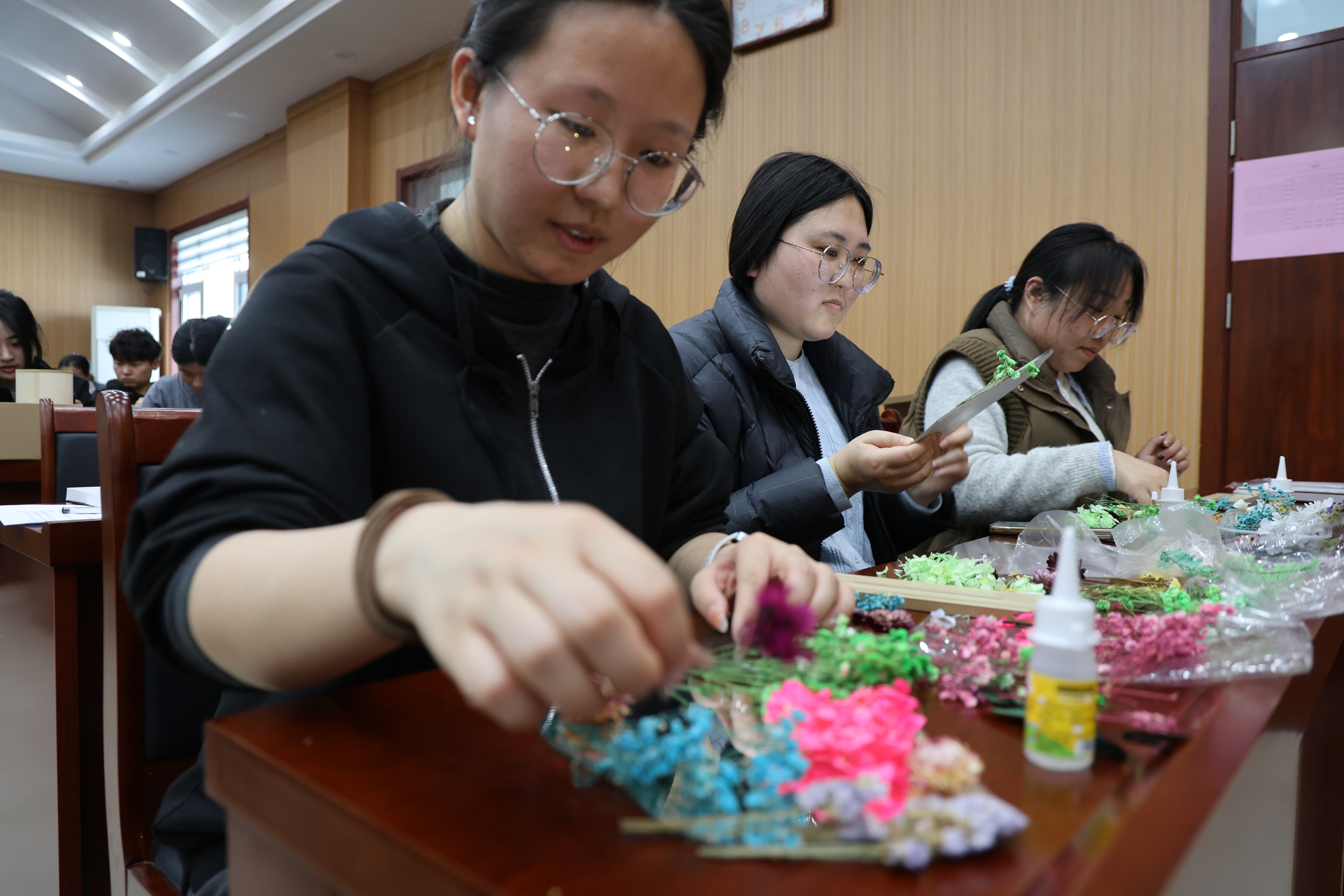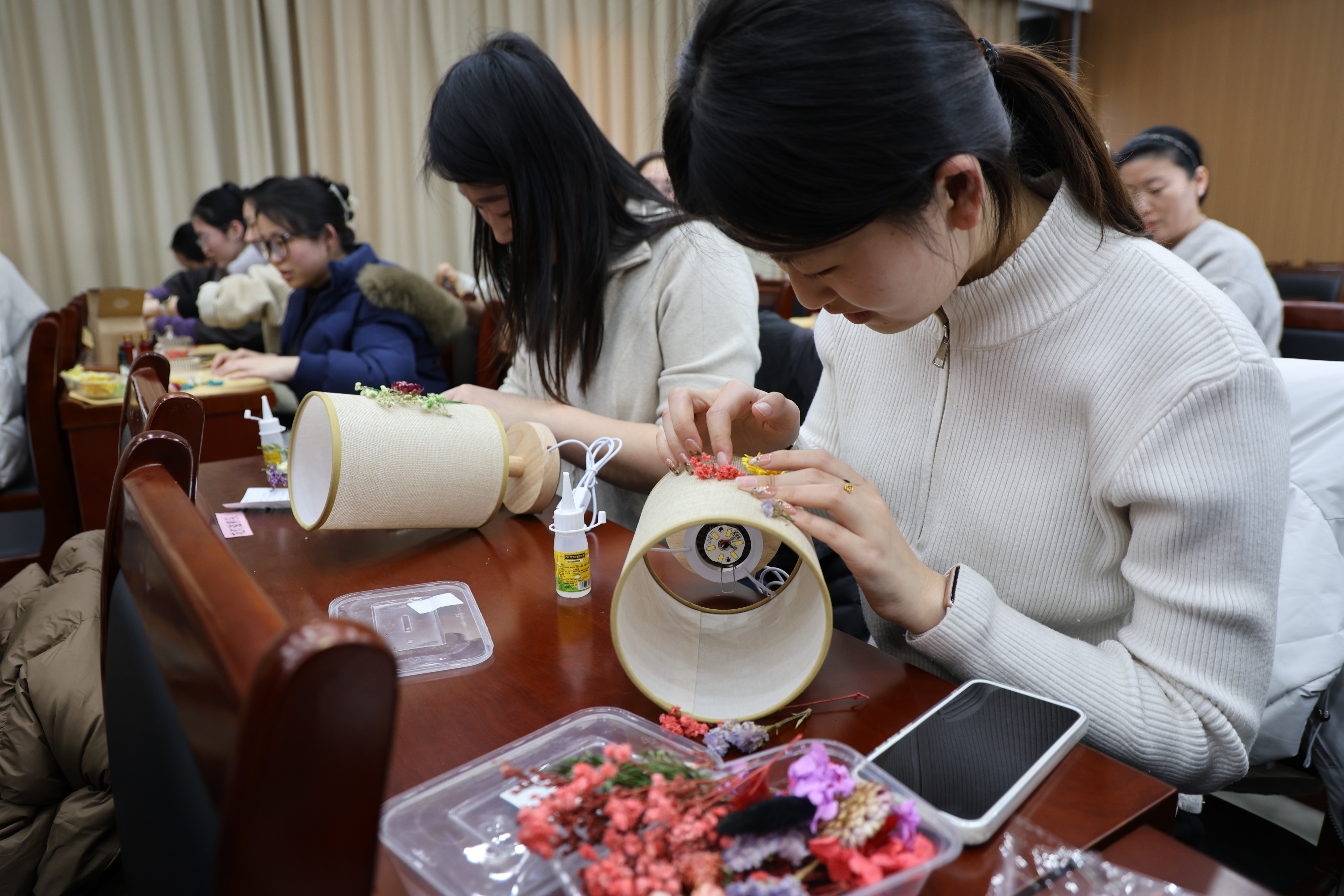 大家一边交流制作技巧,一边发挥创意巧思,将对生活的热爱与对节日的期许融入每一件作品中,亲手打造出独属于自己的节日礼物。制作过程中,遇到疑问的职工们随时向老师请教,在互帮互助、相互学习的氛围里,一件件精致别致的手作作品逐渐成型,现场洋溢着欢声笑语与成就感。