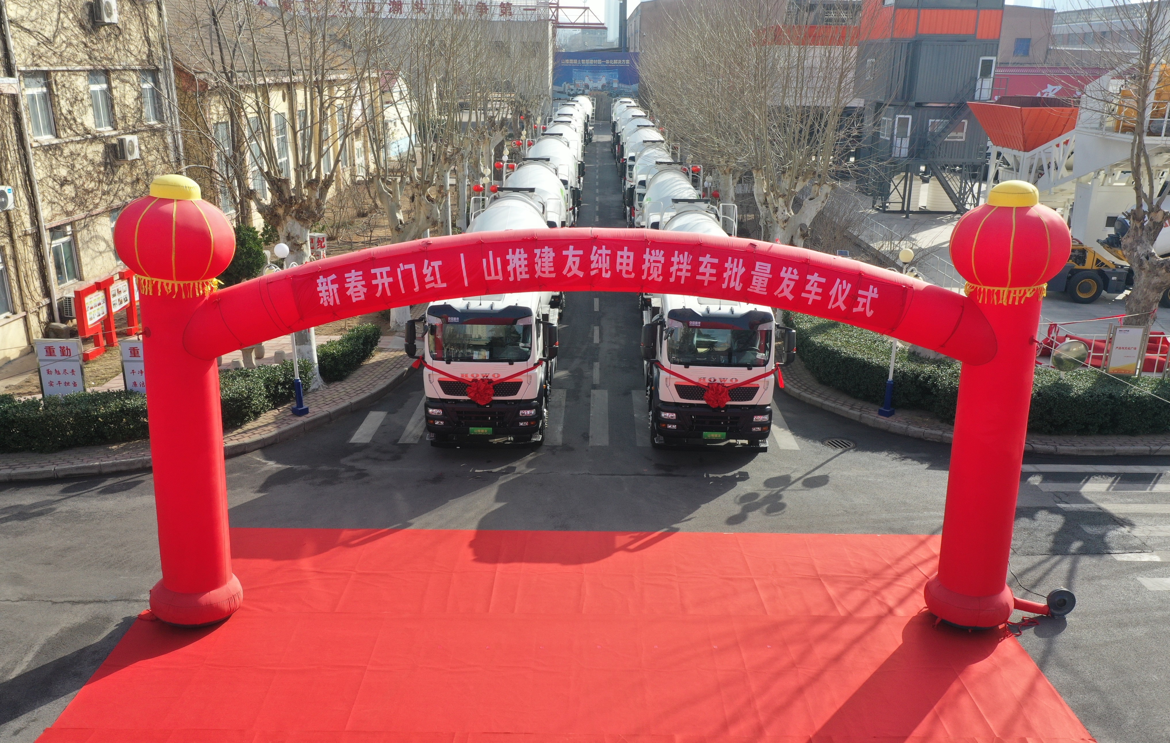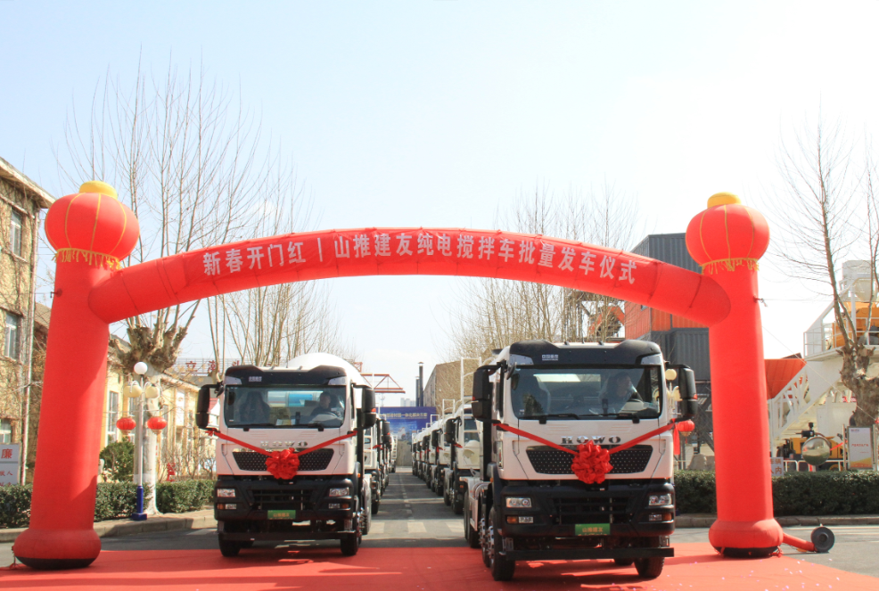近日,山推百余台混凝土产品分批发车,奔赴全球市场。此次发货涵盖纯电搅拌车、沥青搅拌设备、混凝土搅拌站等多品类设备,将广泛应用于海内外城市建设、铁路公路、风电工程等重点项目。山推以三场简短而热烈的发车仪式,共同见证新春首批订单的顺利交付。