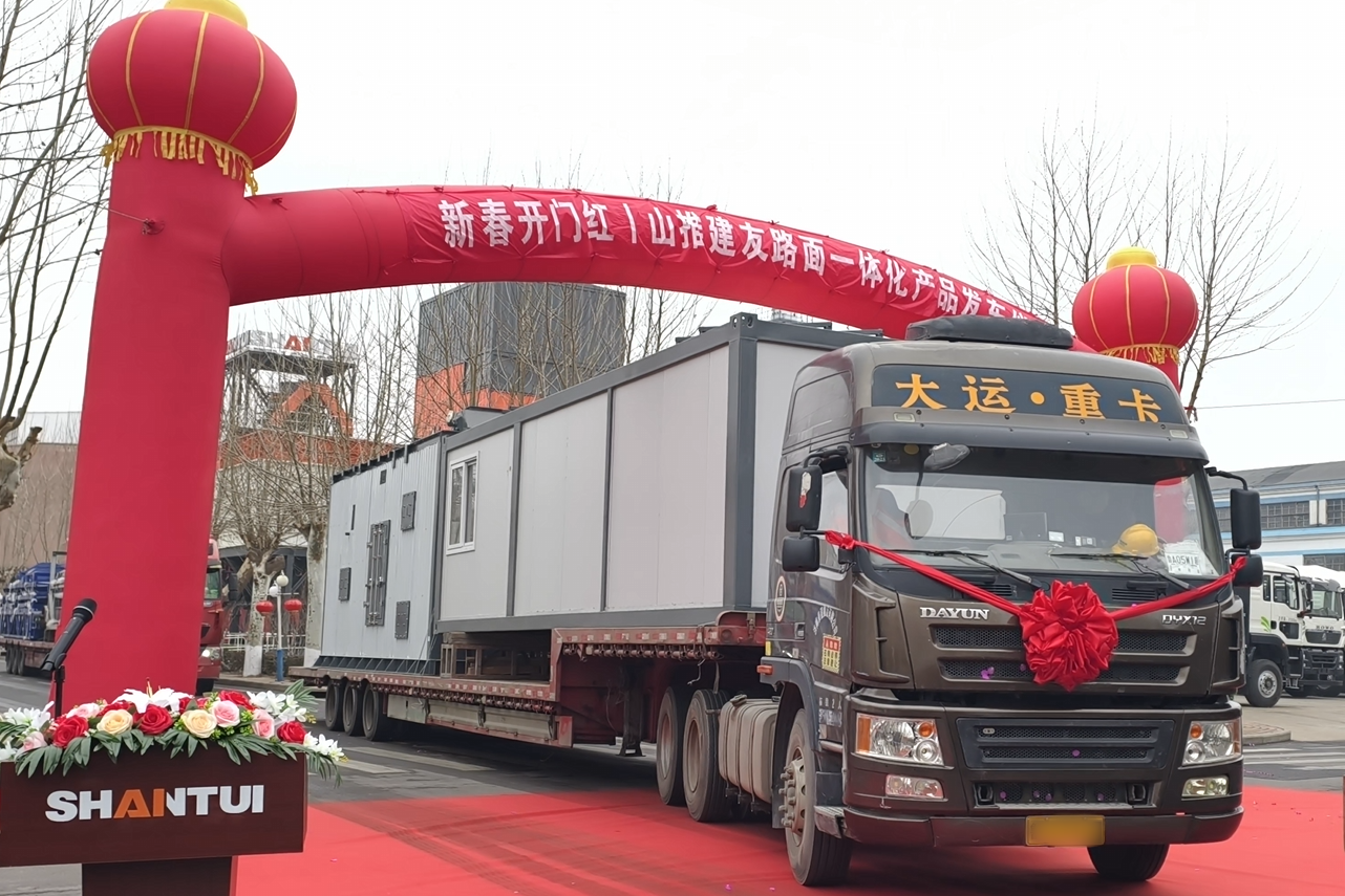 此次发车的沥青搅拌设备,是山推路面一体化产品的重要组成部分。该设备具备高效生产、计量精准、绿色节能、智能管控等特点,可满足高等级公路建设及旧路再生需求。山推路面产品已形成从铣刨、摊铺、压实到沥青拌合、稳定土拌合的全流程闭环,覆盖公路、市政、机场、园区等多元场景,为客户提供一站式路面施工解决方案。