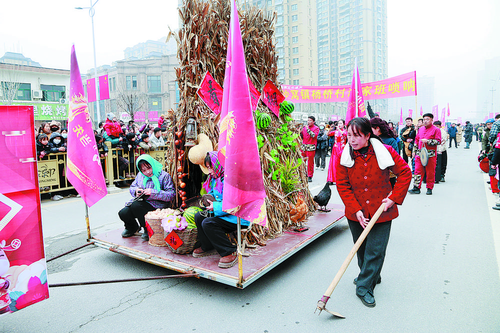 小井镇的粮仓展示、陆圈镇的劳作场景、刘楼镇的扎染制作、长兴集乡的黄河滩区场景……22个方队,就像22个时光切片,把东明县几十年的变迁史,浓缩在这条街演路线上。
