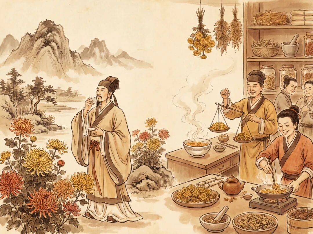 在诗词画卷里,它是“待到重阳日,还来就菊花”的秋日雅韵,是“不是花中偏爱菊,此花开尽更无花”的岁寒风骨。而走进百姓的寻常生活,它摇身一变,成了降火明目、食疗养生的“实用神器”。今天,就让我们解锁菊花的双重身份,get 这份藏在本草里的健康智慧。
