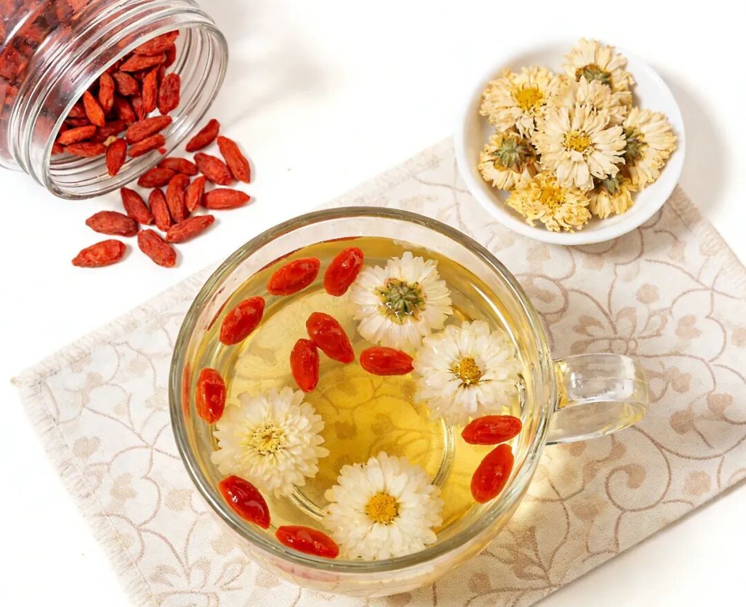 经典款:菊花枸杞茶食材:菊花 5-8 朵、枸杞 10 粒做法:将菊花和枸杞放入杯中,用沸水冲泡,焖泡 5 分钟即可饮用。功效:菊花清肝,枸杞明目补肾,二者搭配,是缓解眼疲劳的“黄金组合”,熬夜后喝一杯,提神又护眼。