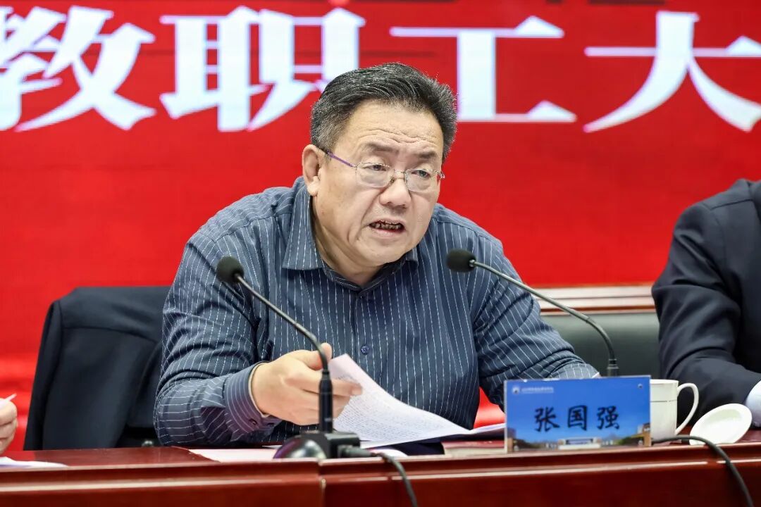 张国强在工作报告中指出,2025年学校在党建引领、组织建设、改革创新、内涵建设、立德树人、产教融合等领域成效显著,圆满完成阶段性目标。他详细解读了中央及省委、省政府新要求新部署,指出学校正处于高质量发展的政策窗口期与改革机遇期,需抢抓机遇、主动作为;周密部署了学校2026年党建引领铸魂、立德树人固本、“双高”建设提质、产教融合深耕、内部治理提升、平安校园守护“六大行动”及22项重点任务,奋力推进学校事业高质量发展,确保“十五五”开好局、起好步。
