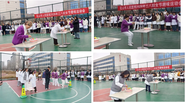 阳春三月,春风送暖。为庆祝第116个“三八”国际妇女节,丰富女职工精神文化生活,3月5日,乳山市人民医院趣味运动会活力启幕,为全院女职工送上一份欢乐满满的节日祝福。内科系统、外科系统、医技系统、行政后勤系统四支代表队齐聚赛场,在趣味比拼中释放压力、凝聚合力,用欢声笑语点亮快乐时光。