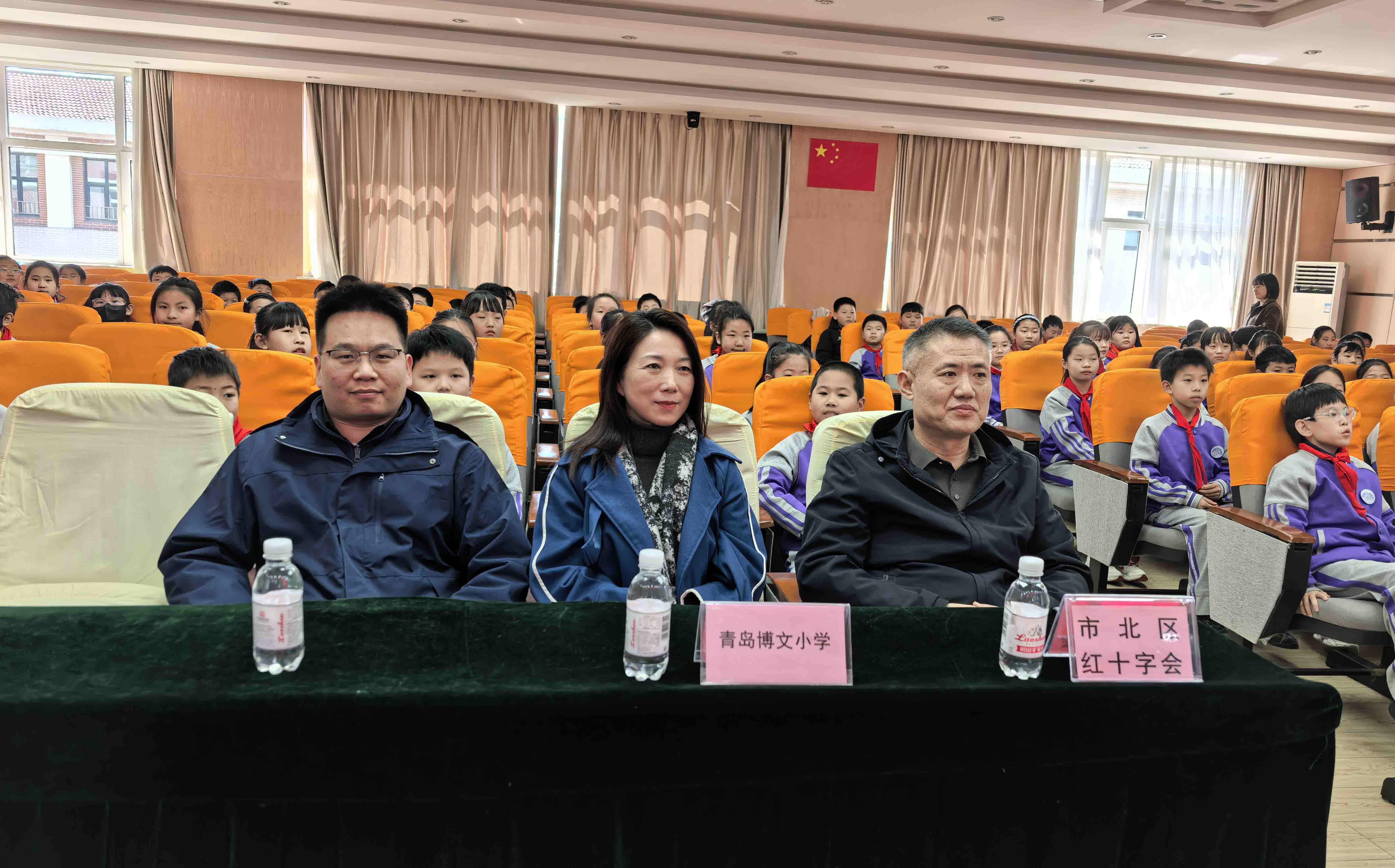 青岛市市北区红十字会副会长徐培泉、博文小学副校长冷玉娟及红十字志愿者代表出席活动,与该校数百名师生共同开启了一场兼具知识性与实践性的公益启蒙之旅。
