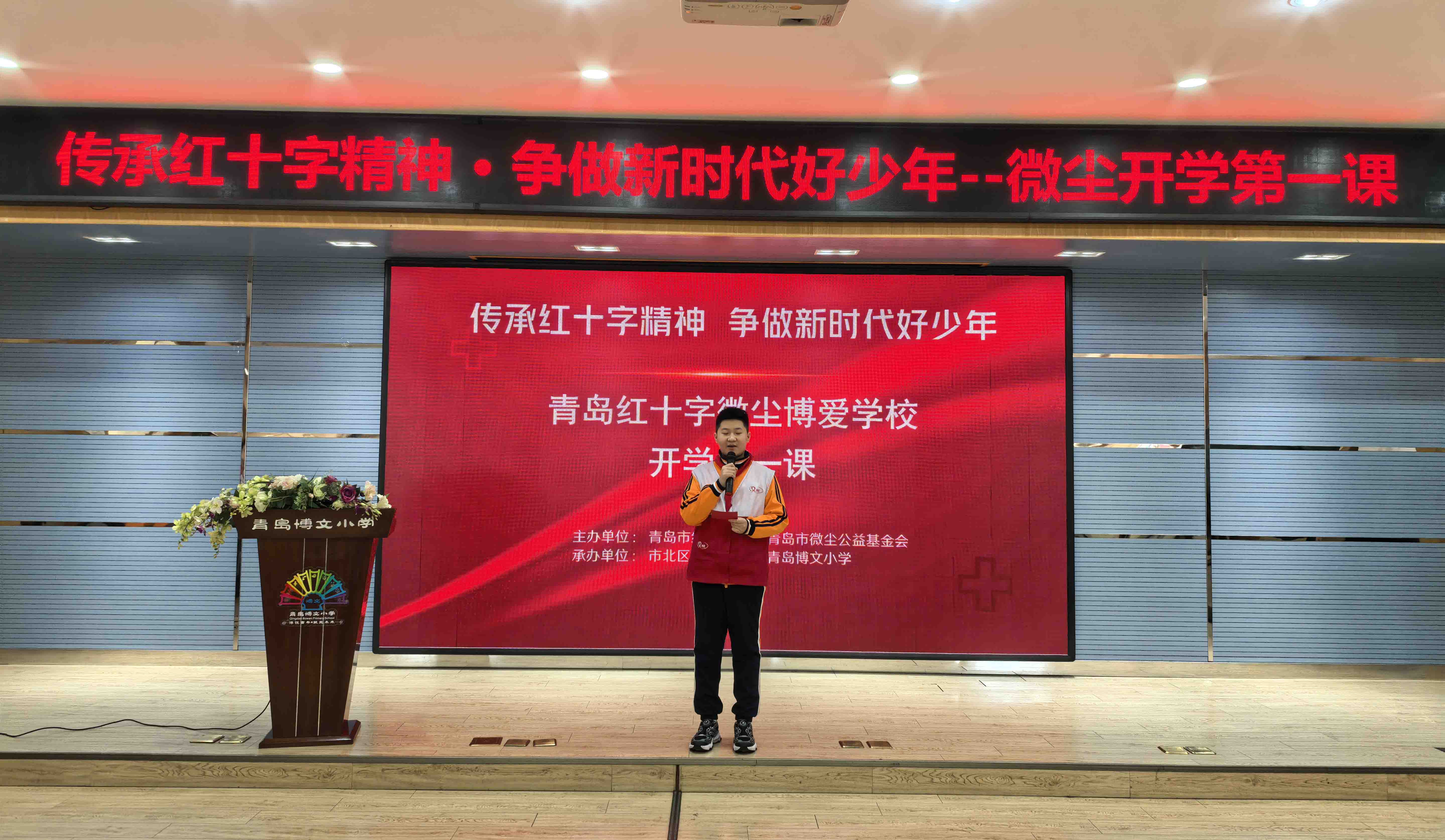 为引导青少年理解人道使命、树立奉献意识,“微尘开学第一课——传承红十字精神・争做新时代好少年”在青岛市博文学校正式启动。