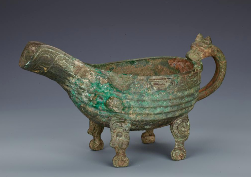 西周“鲁中齐”夔纹兽首鋬四足铜匜