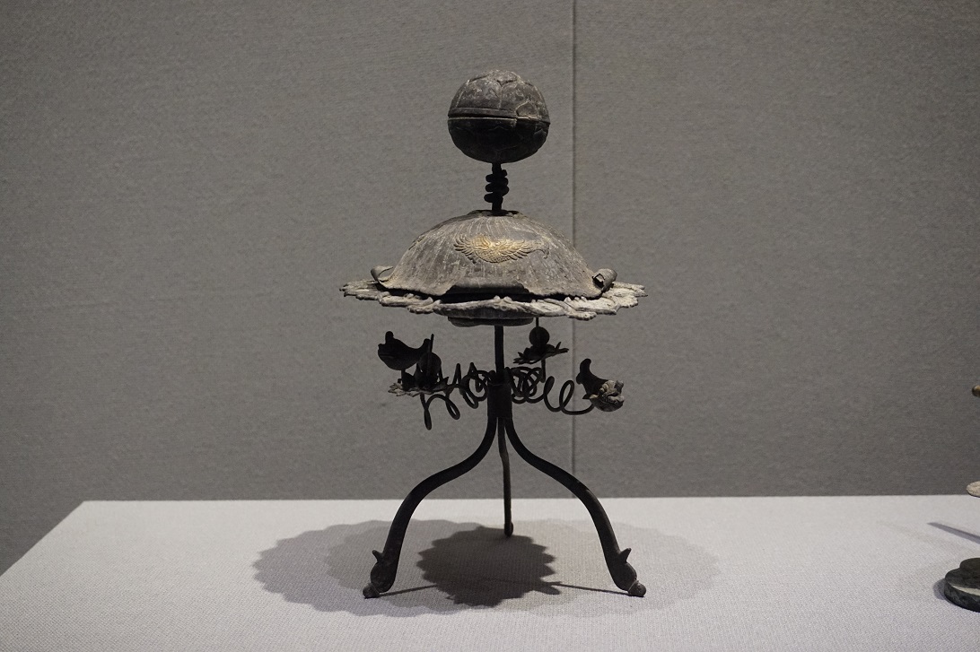 “窑火神工”单元,是一场泥土的修行。兖州王因遗址出土的大汶口文化黑彩叶脉纹彩陶杯,朴拙的器型里藏着先民对自然的敬畏,那是文明最初的审美闪光。泗水尹家城遗址出土的龙山文化高柄镂空蛋壳陶杯,“薄如蛋壳”的工艺,将泥土的韧性发挥到极致。西晋的青瓷“虎子”、北朝的青釉鸡首壶,釉色温润如玉,褪去了原始的粗粝,多了几分雅致与灵动。