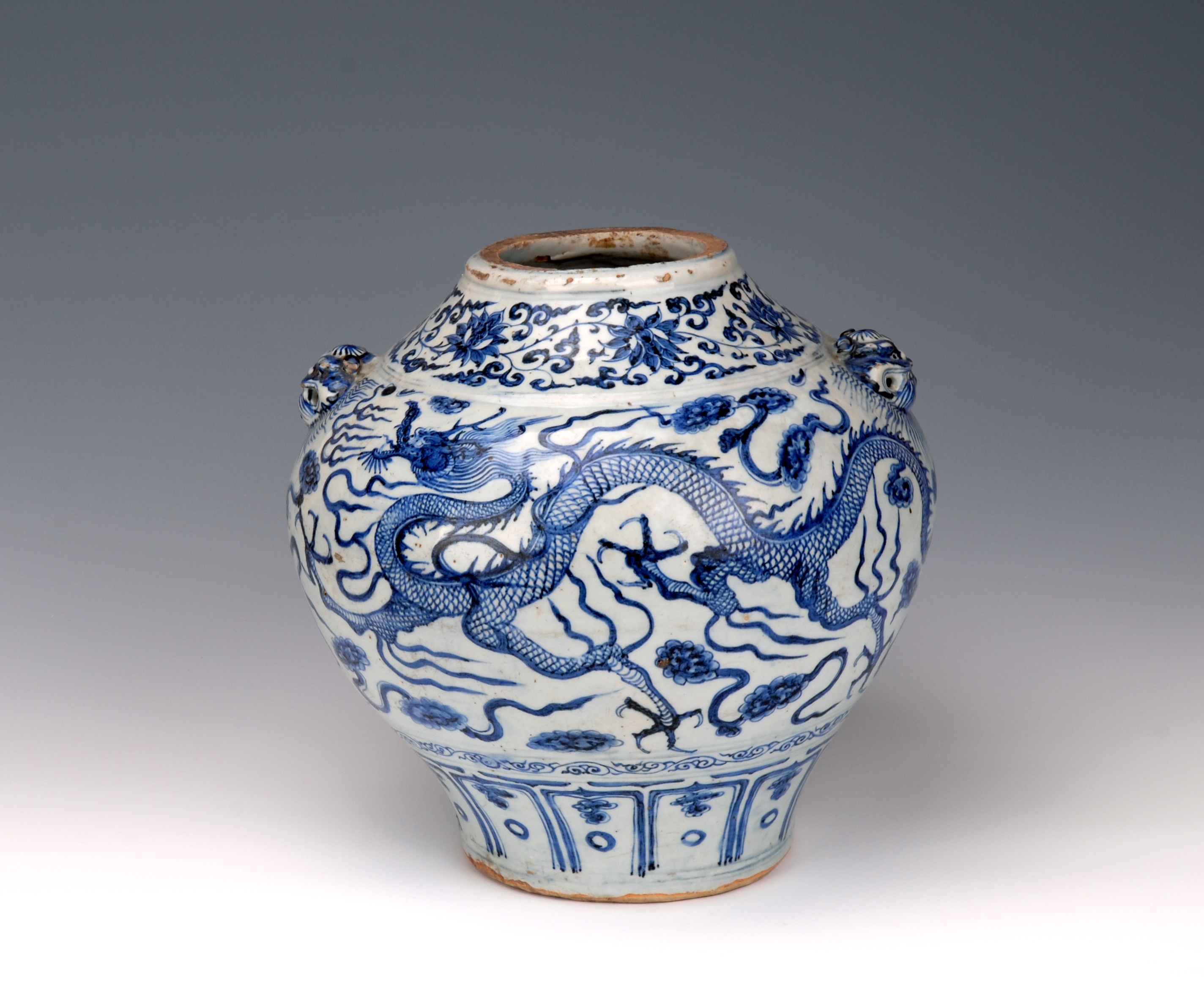 可以想象一个小故事。1368年,奋战于乱世数十年的朱元璋终于平定四海,统一中国,定都南京。朱元璋在位期间,施行一系列促进社会经济发展的措施,社会生产逐渐恢复和发展,国力日趋强盛。朱元璋偶然得到这件元青花,非常喜爱,此时的大明王朝像极了这件元青花上刚猛矫健的云龙,威镇四海。1385年,年纪轻轻的鲁王朱檀即将前往山东封地,朱元璋把这件元青花赏赐给朱檀,期望鲁地在朱檀治理下繁荣昌盛。然而,朱檀年仅19岁就离开了人世,戈妃遭受沉重的打击,她把这件朱檀最喜欢的元青花仔细保存,以寄托对朱檀的无尽思念,最后带入自己的地下世界。