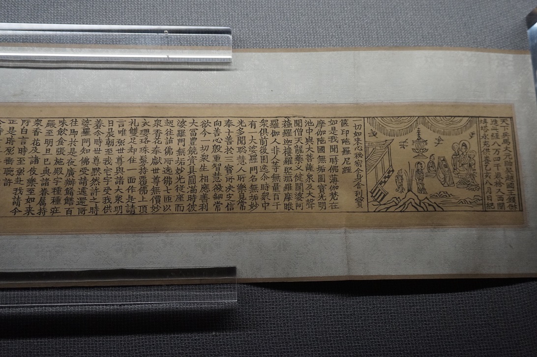 那么,它为何跨越千里,从江南抵达山东?据学者考证,是当年南方商人沿运河北上,往来于济宁经商,将这卷经卷带入齐鲁大地。济宁市博物馆在早期征集文物时将其收购,经精心装裱,让这千年遗珍得以妥善留存。如今,经卷虽饱经沧桑,文字依旧清晰可辨,纸表依旧细腻如初。它不仅是佛教文化的珍贵遗存,更是宋初木刻印刷品中最早被发现的精品之一。