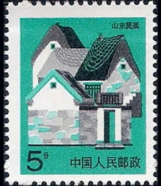 1991年,原邮电部发行普27《民居》邮票,全套两枚,其中一枚便是荣成海草房。毛石垒墙的质感、蓬松厚实的海草屋顶、防风渔网的细节点缀,将一个渔村民居的质朴定格在国家名片之上。这是对一种建筑形态的最高认可,也是对一个地域生存智慧的永恒存档。