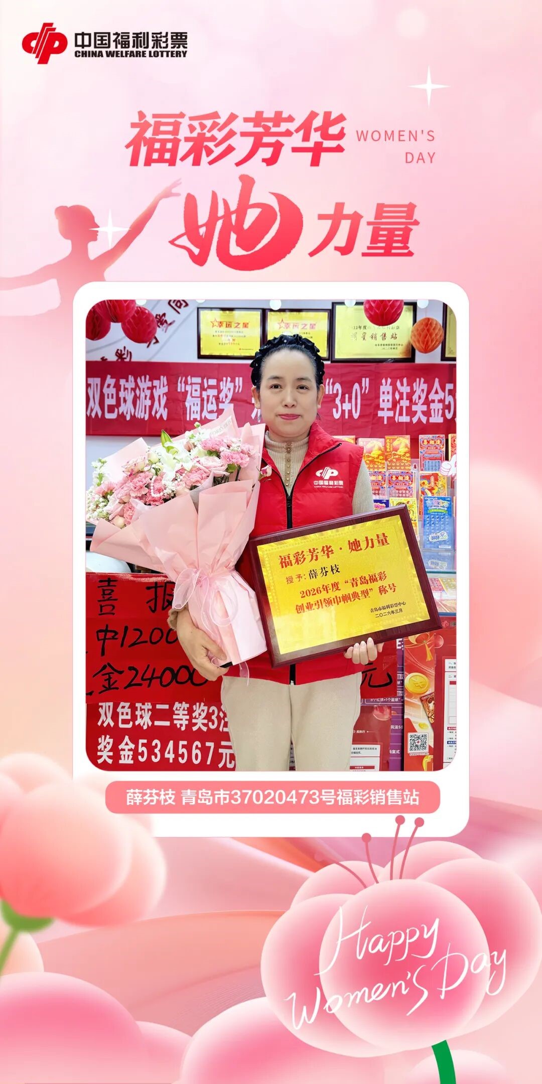 她,是一位在福彩销售一线默默耕耘了18年的“老福彩”,是彩友信赖的“贴心人”,是邻里称赞的“热心肠”,更是福彩公益路上坚定的践行者。她用细致入微的服务、始终如一的坚守,在平凡的岗位上书写着不凡的奋斗篇章。她,就是市北区四流南路66号甲万科未来城福彩37020473销售站的销售员——薛芬枝。