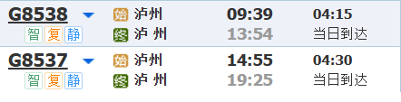 铁路12306网站上部分车次