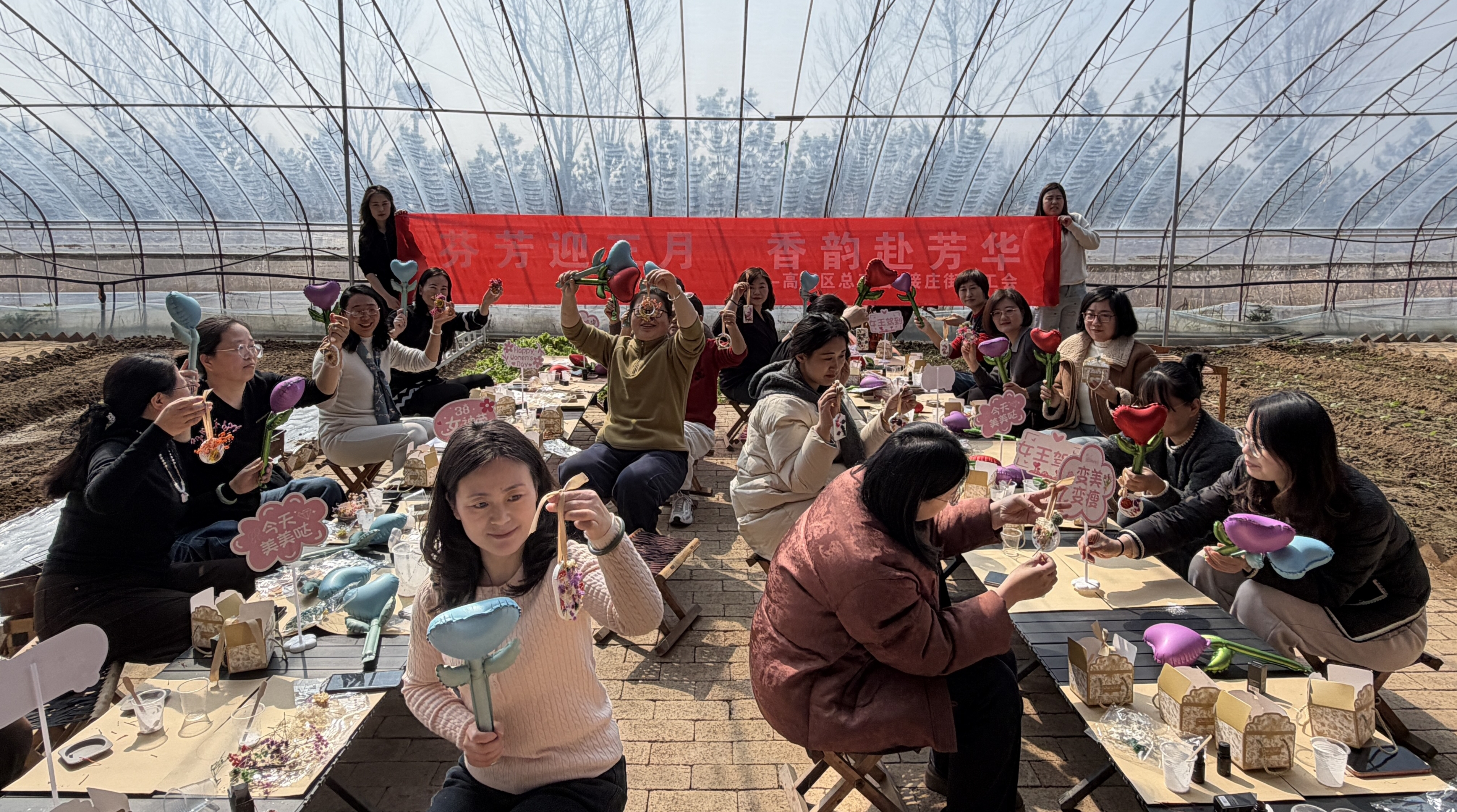 3月6日,济宁高新区接庄街道工会携手高新区总工会在半亩田农博园开展“芬芳迎三月,香韵赴芳华”主题手工活动,邀请辖区众多女性欢聚一堂,共度温馨雅致的节日时光。