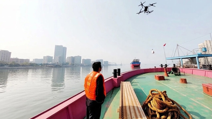 长江上的无人机给货轮送外卖、春晚舞台上的机器人和穿行于大江南北的列车。