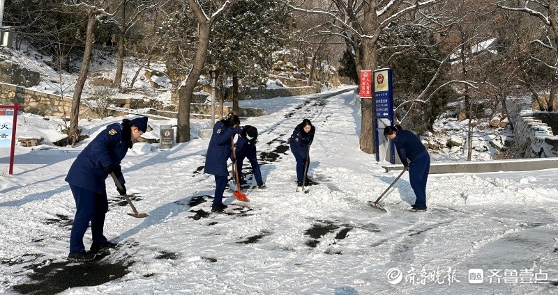 守护泰山,巾帼担当。从晨光熹微到暮色苍茫,从盘道商户到千年古刹,这一抹跃动的“巾帼火焰蓝”步履铿锵,她们用最美好的年华,守护着千年岱宗的平安。