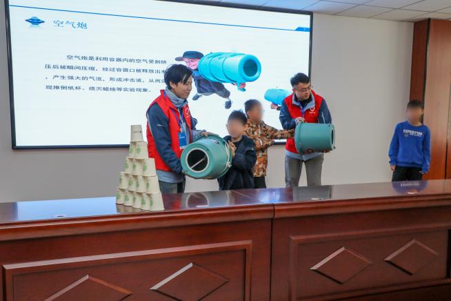 活动中,浪潮软件青年志愿者教师以“走进人工智能的奇妙世界”为主题开展科普小课堂,通过机器人舞蹈表演、空气炮、马德堡半球等科学秀场互动,为孩子们打开科技之门、启迪科学兴趣、激发探索精神。趣味互动环节,孩子们分组参与AI绘画大师、AI 猜谜游戏,在沉浸式体验中感受科技魅力。爱心物资捐赠仪式上,浪潮集团青年志愿服务队为孩子们送上弘扬科学家精神绘本书籍《远方的火焰-郭永怀》、文具等学习生活用品,用实实在在的行动为孩子们的学习生活保驾护航。活动最后,全体人员合唱《学习雷锋好榜样》,青年志愿者为孩子们送上手写祝福卡片。