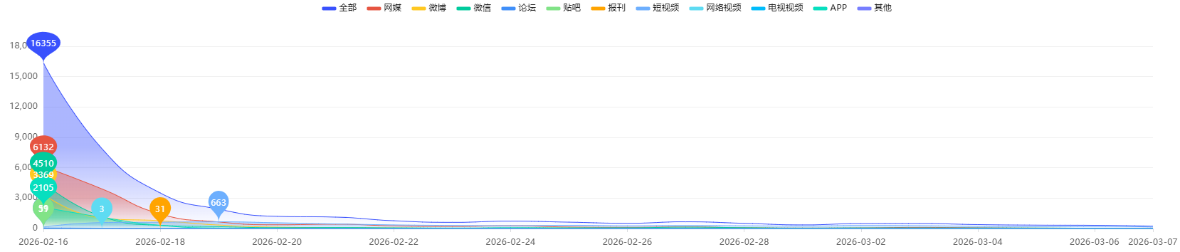 齐鲁蛙眼舆情大数据平台显示,自2026年2月16日至3月7日,相关话题全网信息量约3.9万条,形成102次话题热搜。