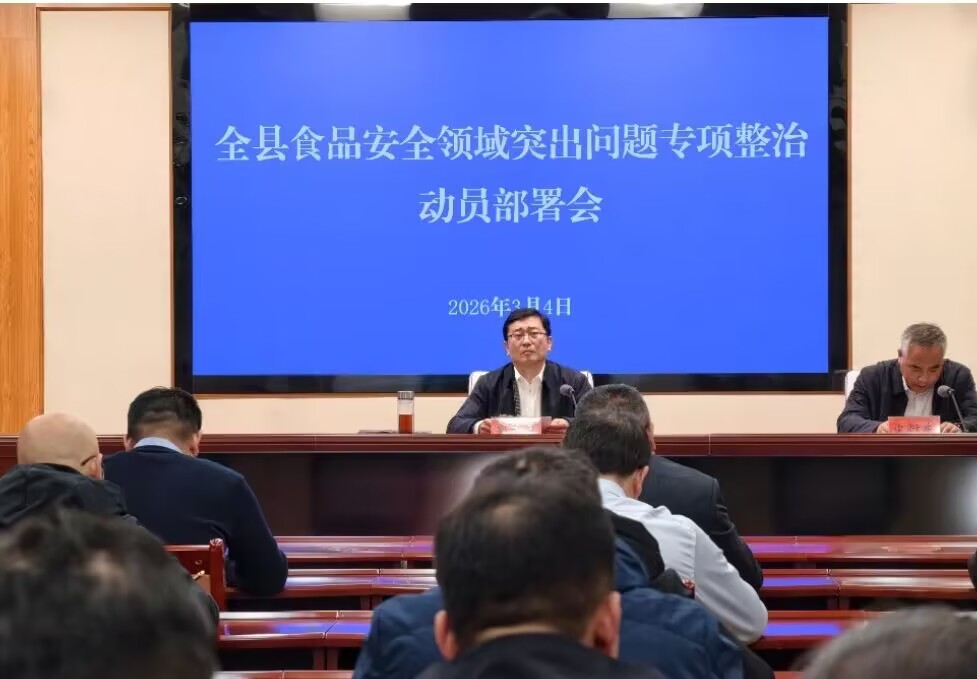 会议强调,一要强化责任担当,切实“守底线”。各相关部门按照工作部署,通过专项整治,净化市场环境,规范市场秩序,打造安全放心的食品消费市场,守牢食品安全底线,让群众吃得放心、吃得安心、吃得舒心。二要聚焦重点领域,落实“抓整改”。围绕肉及肉制品全链条,严把养殖源头关、屠宰规范关、加工流通关,筑牢“从牧场到餐桌”的安全防线;围绕保健类食品突出问题,整治“非法添加+虚假宣传”的乱象顽疾,构建“监管+科普+社会监督”的共治格局;围绕网络餐饮食品安全问题,规范平台主体责任,严查入网餐饮经营行为,推进智慧监管协同,推动网络餐饮监管规范化、常态化。三要凝聚整治合力,确保“见实效”。全方位开展排查整治,坚持开门搞整治,主动回应群众关切;实施清单化管理,构建“排查—整治—评估—提升”的闭环管理体系;严格落实属地管理责任、部门监管责任、企业主体责任,建立“监管联动、数据联通、问题联处、执法联合”协作机制,推动全县食品安全治理能力持续提升,全力守护人民群众“舌尖上的安全”,为全县经济社会高质量发展提供坚强的食品安全保障。