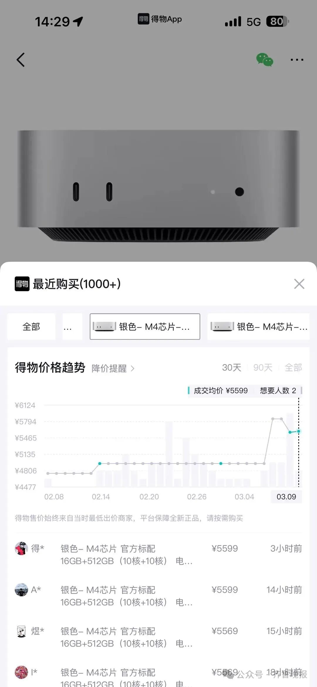 “龙虾”热带火苹果Mac Mini M4主机 近一周价格逆势增长近650元