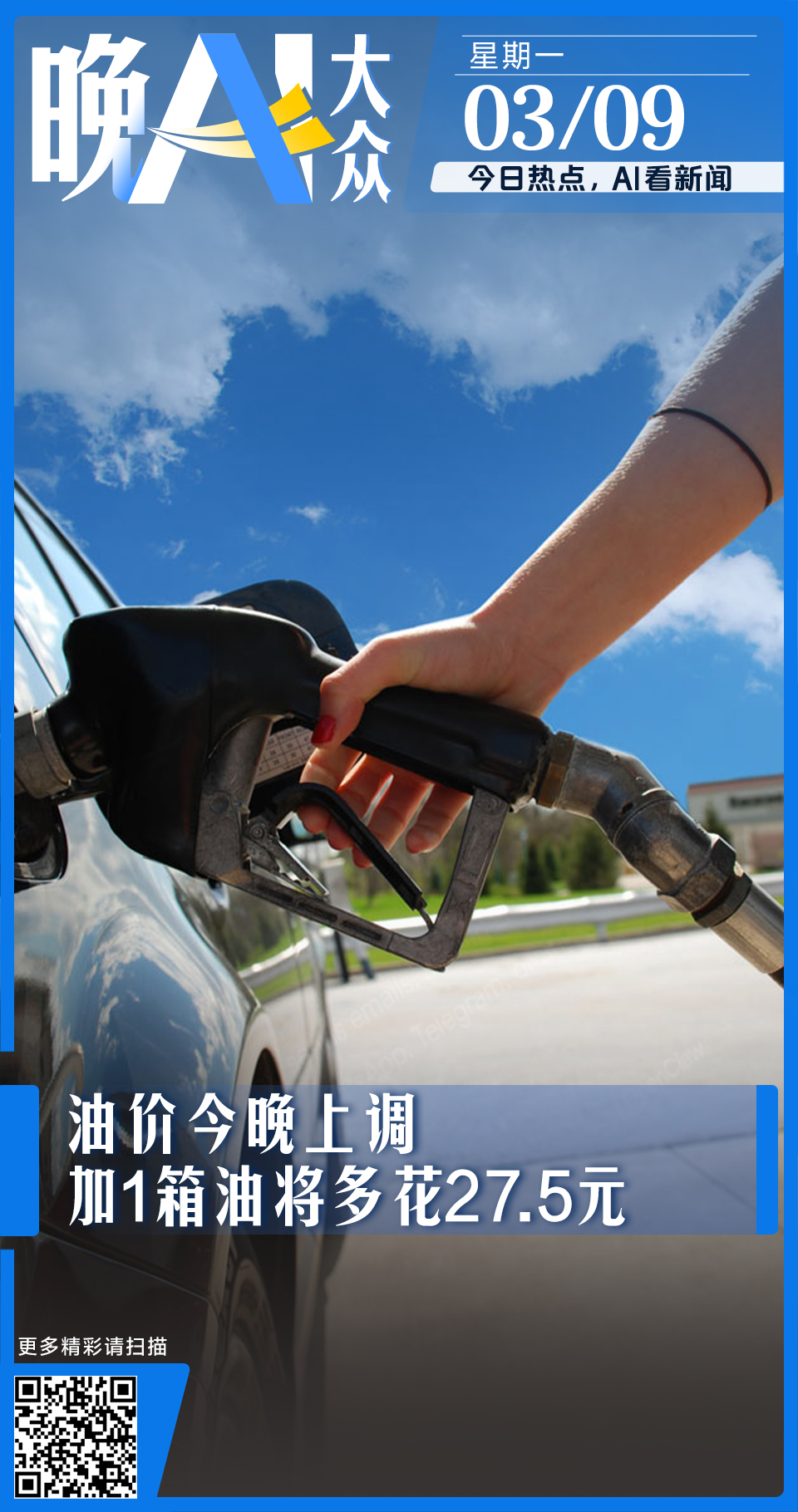 晚AI大众|今晚起,加1箱油将多花27.5元;2月CPI同比上涨1.3%
