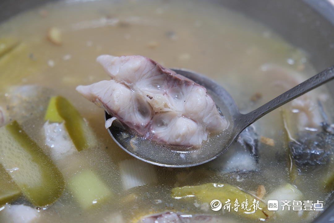 清水下锅,葱姜提香,再放入秘制酸萝卜,小火慢煮,酸香便慢慢渗进汤里。店里的鱼,坚持一鱼两吃——一半做酸菜鱼,一半做水煮鱼,照顾不同食客的喜好。而那碗汤,更是点睛之笔:酸萝卜的清爽配上胡椒的微麻,开胃又暖身。“胡椒辣口不辣心,酸萝卜顺气,吃着特别舒服。”老食客宋波一句话,道出了许多人的心声。他在这里一吃就是二十年,每次来,一盆酸菜鱼是雷打不动的必点菜。从莒县来石臼街道办事的陈先生,更是连着三天都来光顾:“第一天是看推荐来的,吃过之后确实好吃。趁着在这儿几天,想把他家菜品都尝个遍。”