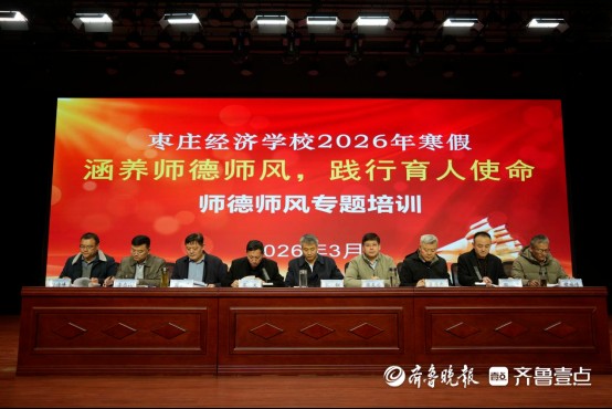 为进一步加强教师队伍建设,打造高素质专业化教师队伍,近日,枣庄经济学校以“涵养师德师风,践行育人使命”为主题,精心组织开展2026年寒假师德师风专题培训。本次培训坚持师德师风第一标准,紧扣新时代教师队伍建设要求,多措并举推动教师师德素养与育人能力双提升,为新学期学校教育教学工作高质量开展筑牢思想和能力根基。