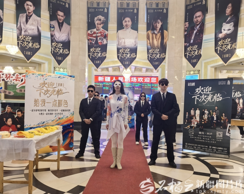 3月7日,新疆人民剧场宣传推荐《欢迎下次光临》话剧。石榴云/新疆日报记者 赵悦摄