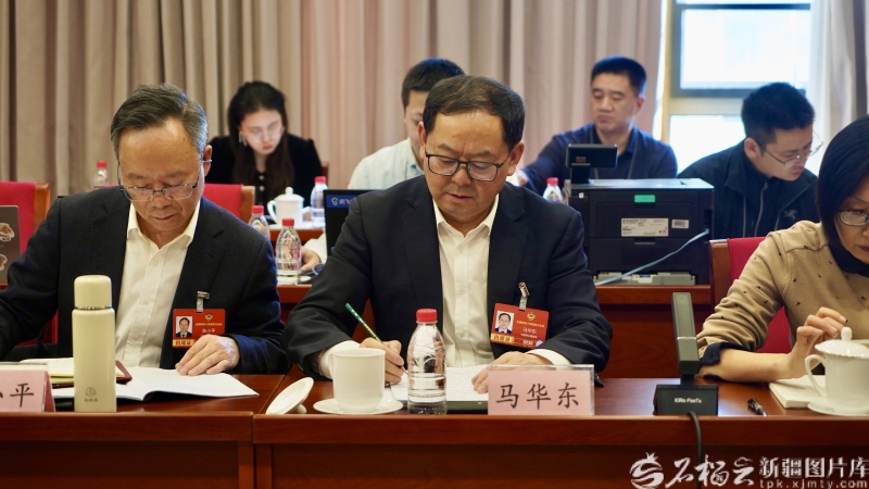 3月9日下午,出席全国政协十四届四次会议的住疆全国政协委员分别参加所在界别的小组会议,讨论“两高”工作报告,审议各项决议和报告草案。图为住疆全国政协委员马华东在小组会议上认真记录。石榴云/新疆日报记者 王昕摄